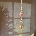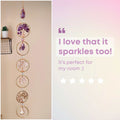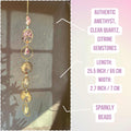 This suncatcher boasts Citrine Amethyst and Clear Quartz gemstones, known to promote positivity and clarity.