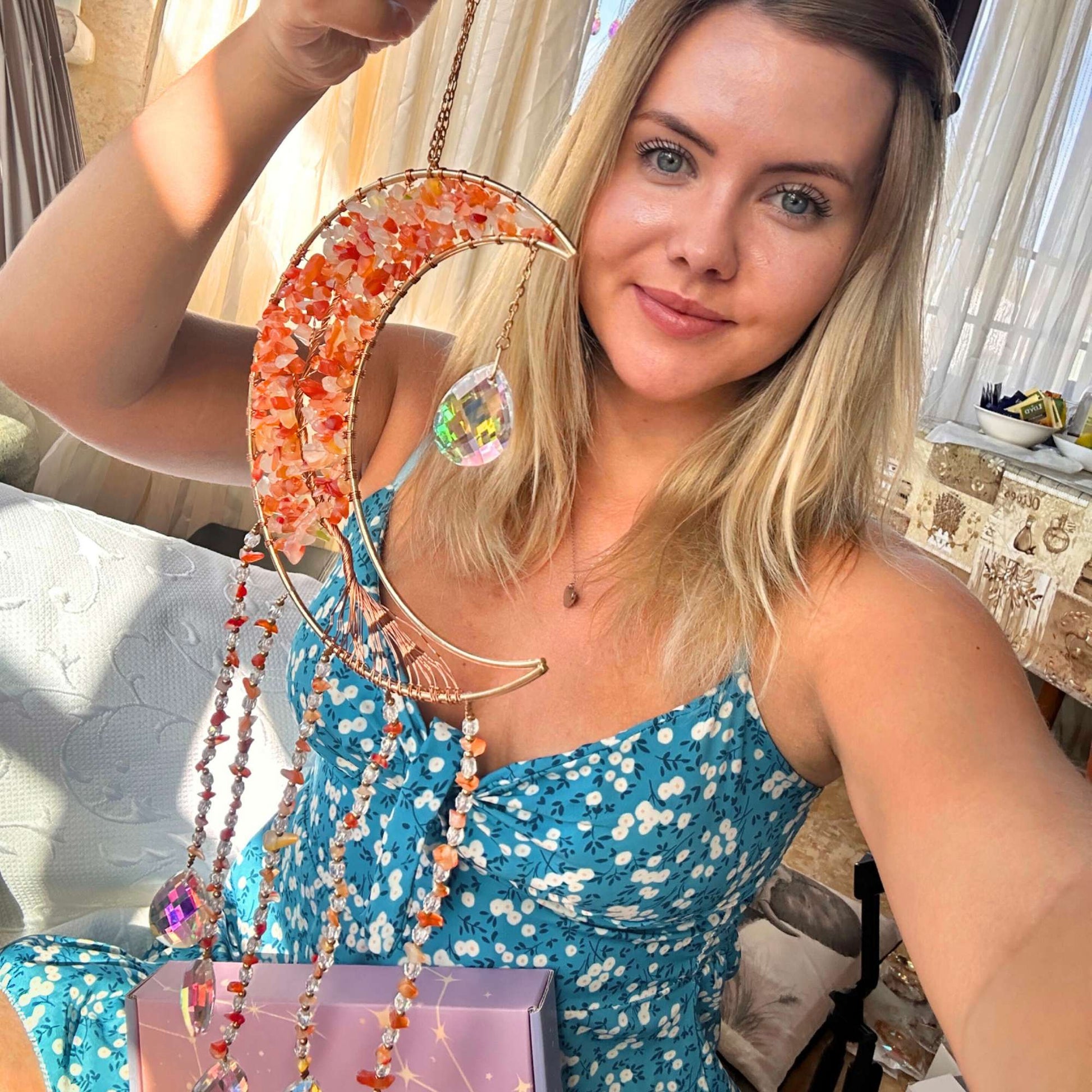 Add a touch of celestial magic with the Moonlight Suncatcher ✨🌌. Available in Amethyst, Red Agate, and Rose Quartz, this stunning 21-inch suncatcher is extra sparkly and designed to transform any space with its enchanting glow.